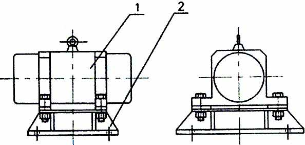 BZF倉壁振動器的結構如圖所示。由振動電機(1)、底座(2)兩部分組成。振動電機和底座由螺栓緊密地固定為一體,由于底座堅固地安裝在料倉壁上,這樣就構成了單質點定向強迫振動系統。